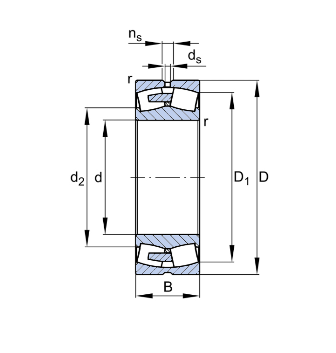 調(diào)心滾子軸承具有雙列滾子,外圈有1條共用球面滾道,內(nèi)圈有2條滾道 并相對軸承軸線傾斜成一個角度。這種巧妙的構(gòu)造使它具有自動調(diào)心性能, 因而不易受軸與軸承箱座角度對誤差或軸彎曲的影響,適用于安裝誤差或軸 撓曲而引起角度誤差之場合。該軸承除能承受徑向負(fù)荷外,還能承受雙向作 用的軸向負(fù)荷。調(diào)心滾子軸承其內(nèi)孔有圓柱形和圓錐形兩種,圓錐形錐孔錐度為1:30 和1:12兩種,這種圓錐形內(nèi)孔軸承配以緊定套或退卸套,即可將錐形內(nèi)孔調(diào) 心球軸承方便、迅速地裝配在光軸或階梯機(jī)軸上。